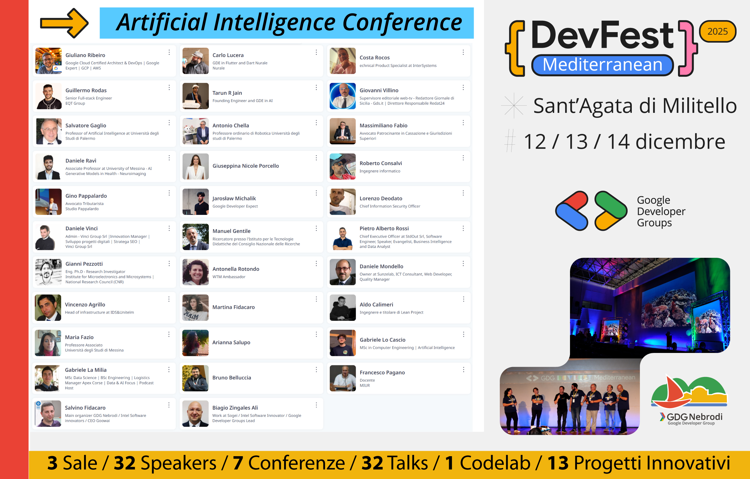 Organized annually by GDG Nebrodi, in partnership with Women TechMakers and other Mediterranean Google Developers Groups, DevFest is a unique opportunity to: